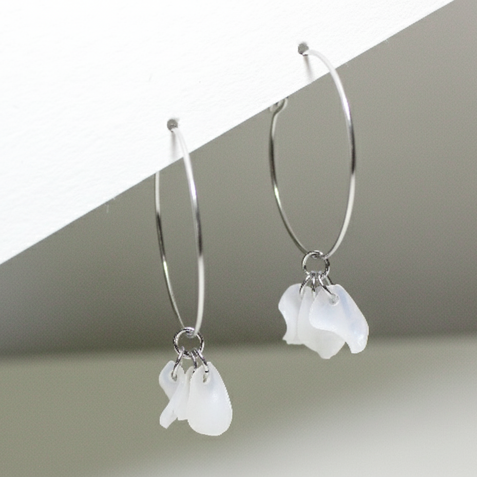 Los pendientes Emma bañados en oro 14k, adornados con pétalos blancos. Estos pendientes transmiten la sofisticación, convirtiéndolos en la elección ideal para complementar tu estilo en bodas, bautizos y comuniones.